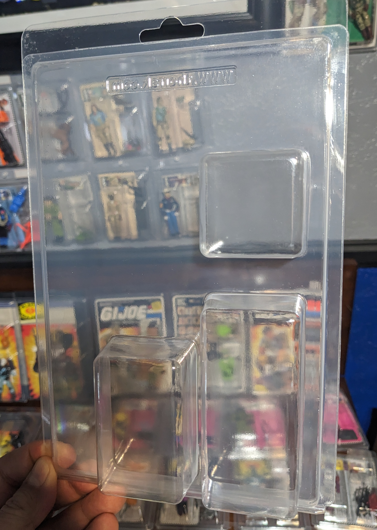 Perfect for displaying loose 3.75"vintage figures, accessories and 6x9 CUT File Card. Use to protect your investment. The durable plastic material ensures your figures stay safe and secure. This display case is perfect for any action figure enthusiast looking to showcase their collection in a stylish and functional way. The clamshell design protects your figures from dust and damage while still allowing you to easily view them. Add these to your collection today and display them with full file card while keeping accessories with the figure!
