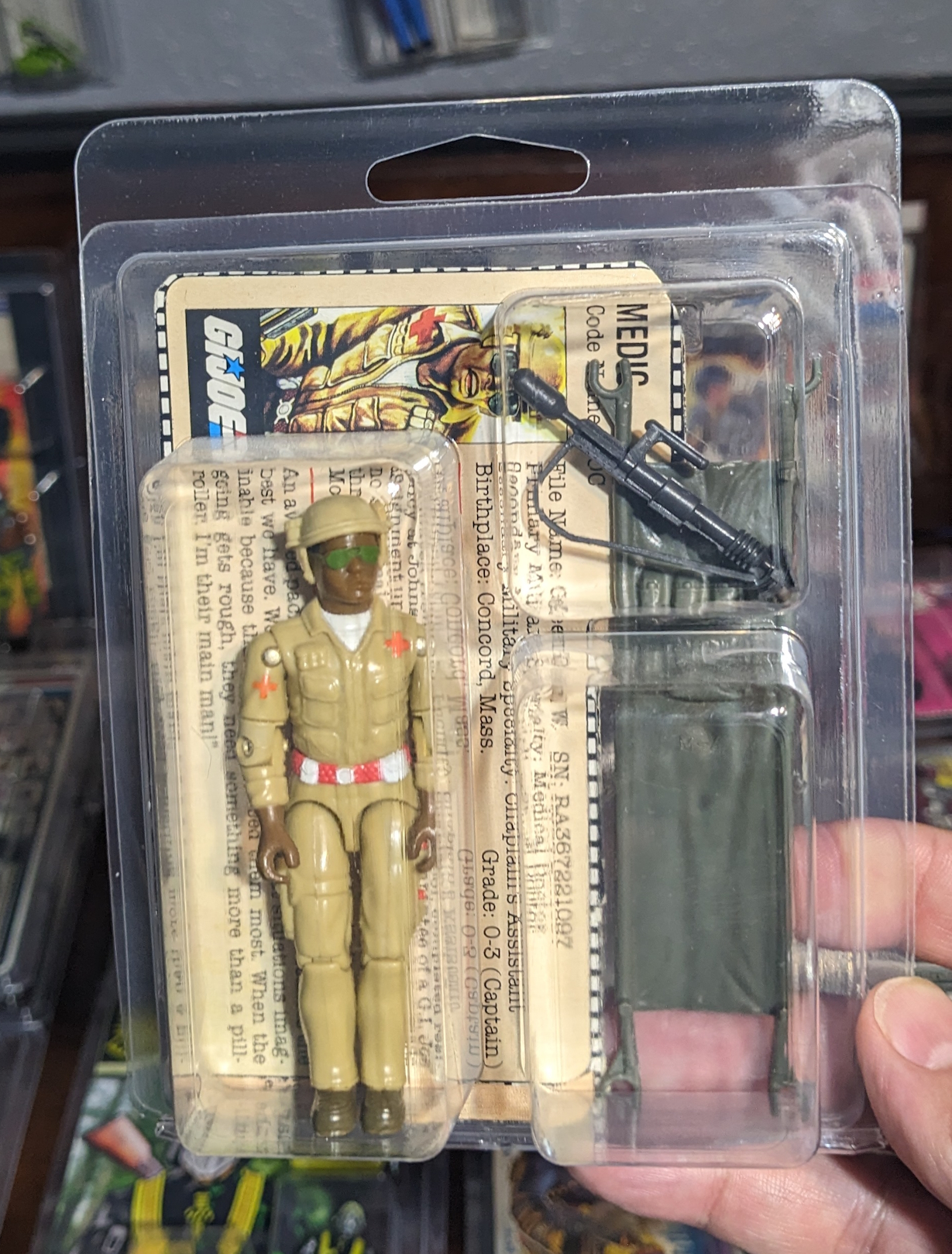 Perfect for displaying loose 3.75" vintage figures, accessories and 6x9 CUT File Card. Use to protect your investment. The durable plastic material ensures your figures stay safe and secure. This display case is perfect for any action figure enthusiast looking to showcase their collection in a stylish and functional way. The clamshell design protects your figures from dust and damage while still allowing you to easily view them. Add these to your collection today and display them with full file card while keeping accessories with the figure!